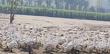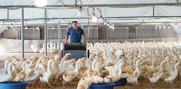 工作人員正在為鵝群喂飼料 檢查“五龍鵝”生長(zhǎng)情況 通過(guò)數(shù)智化平臺(tái)查看鵝棚狀態(tài) 按重量將鵝蛋進(jìn)行分類(lèi) 天歌農(nóng)牧公司鳥(niǎo)瞰圖 食品加工間內(nèi)修剪