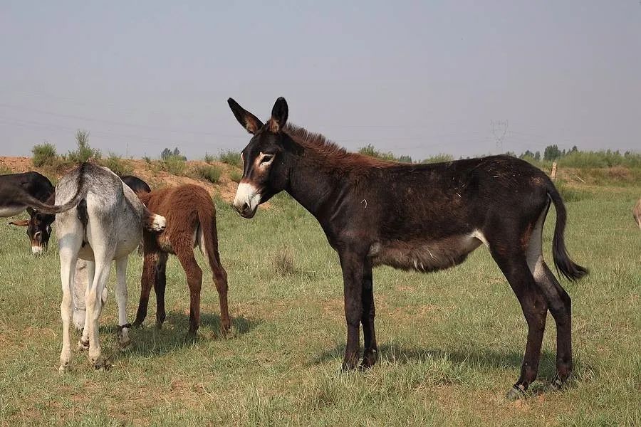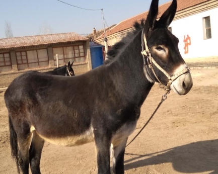 晉南驢,產(chǎn)于山西南部,以夏縣、聞喜兩縣為中心產(chǎn)區(qū)。包括平陸、芮城、永濟(jì)、臨猗等縣市及臨汾南部各縣市。體格高大,頭頸高昂,耳大而長(zhǎng),鬐甲稍低,背部平直,四肢端正。毛色以黑色并帶有“三白”(兩眼圈白、嘴頭白、肚皮白)為特征。晉南驢8~12個(gè)月有發(fā)情表現(xiàn),初配年齡為2.5~3歲,發(fā)情周期平均為22天,發(fā)情持續(xù)期為4~8天,妊娠期為12個(gè)月,母驢以3~10歲生育能力最強(qiáng)。晉南驢產(chǎn)肉性能較好,幼駒生長(zhǎng)發(fā)育較快,1歲以內(nèi)發(fā)育更快,1歲時(shí)體高可達(dá)成年體高的90%左右。