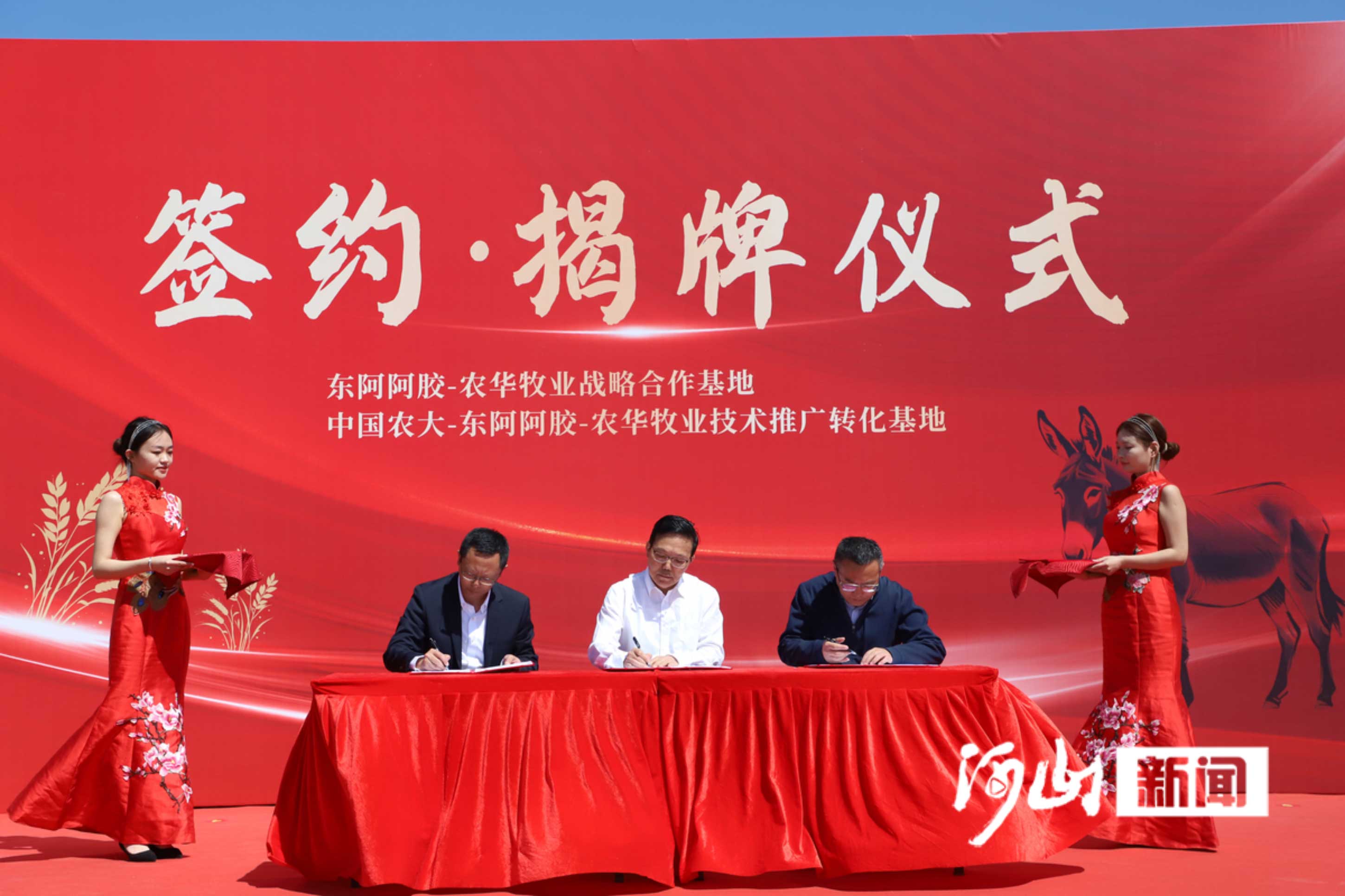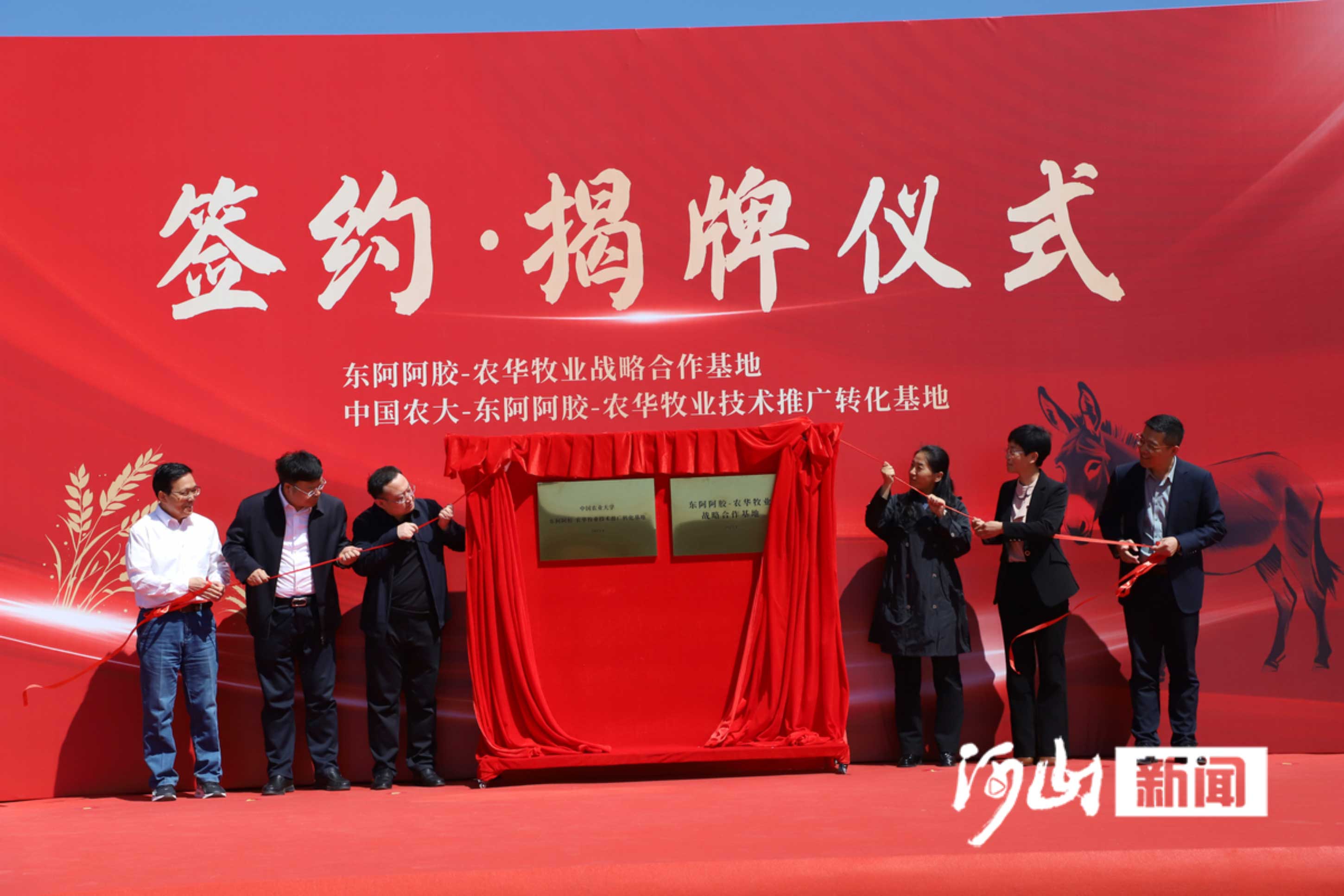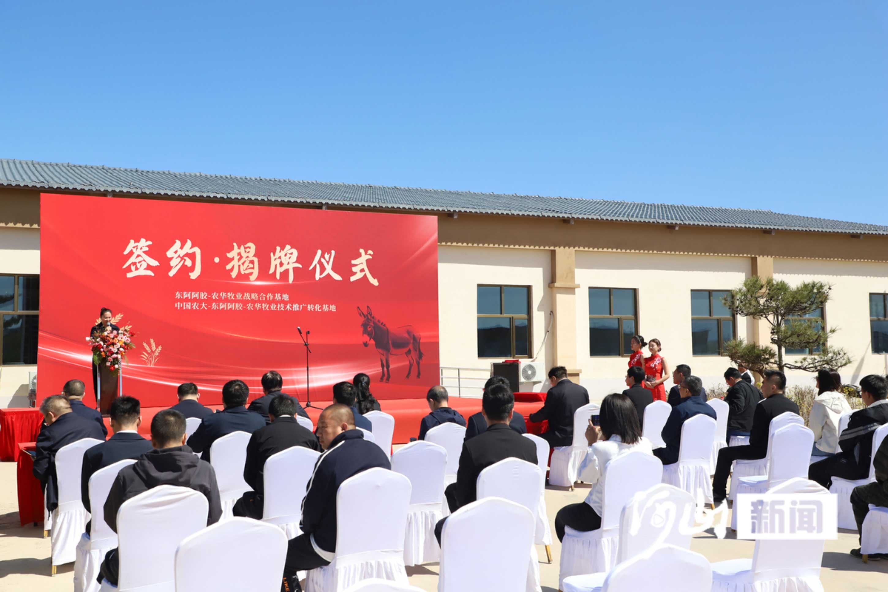 4月27日,“東阿阿膠-農(nóng)華牧業(yè)戰(zhàn)略合作基地”“中國農(nóng)大-東阿阿膠-農(nóng)華牧業(yè)技術(shù)推廣轉(zhuǎn)化基地”在張家口農(nóng)華牧業(yè)有限公司(北方驢業(yè)聯(lián)席會首批發(fā)起單位)陽原驢種驢繁育及育肥基地揭牌。