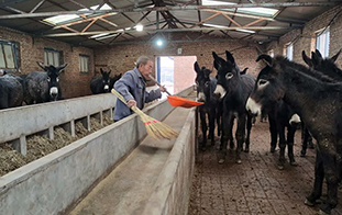 近日,在河南省駐馬店市泌陽縣種畜場曾溝牧場,一頭頭精心飼養(yǎng)的純種“泌陽驢”健碩可愛,有的在飲水、有的在吃飼料,還有幾頭小毛驢在圈舍撒歡嬉戲,整個驢舍干凈整潔