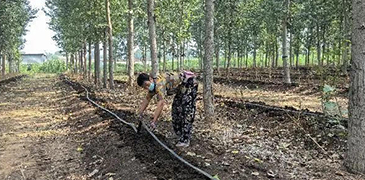 工人在壟上鋪設(shè)水管,確保蚯蚓養(yǎng)殖有足夠的水源供應(yīng)。焦韓冰攝 近日,走進(jìn)河北省邱縣香城固鎮(zhèn)西臨河村,村外30多畝楊樹(shù)林下的景象格外引人注目:一壟壟黑褐色的“田壟&rdqu