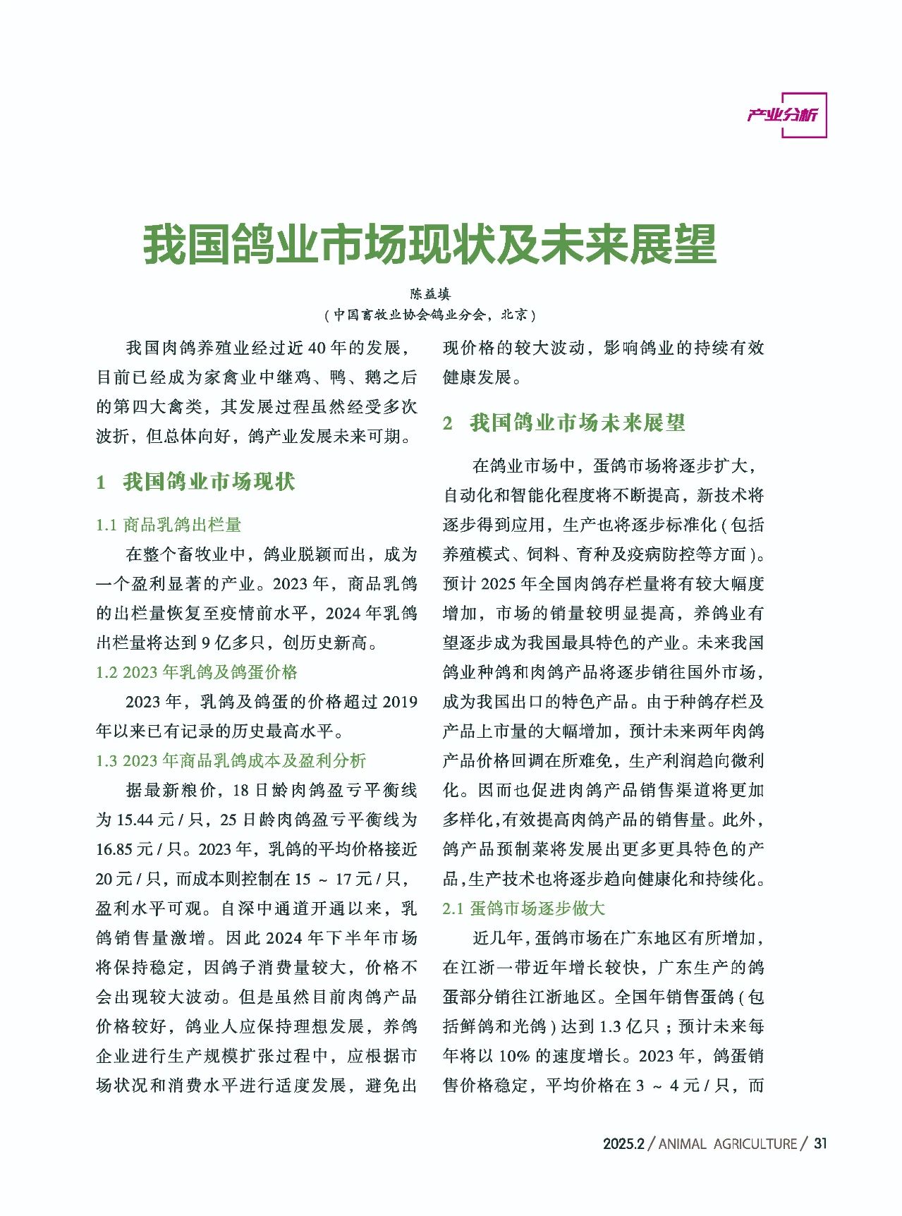 我國鴿業(yè)市場現(xiàn)狀及未來展望