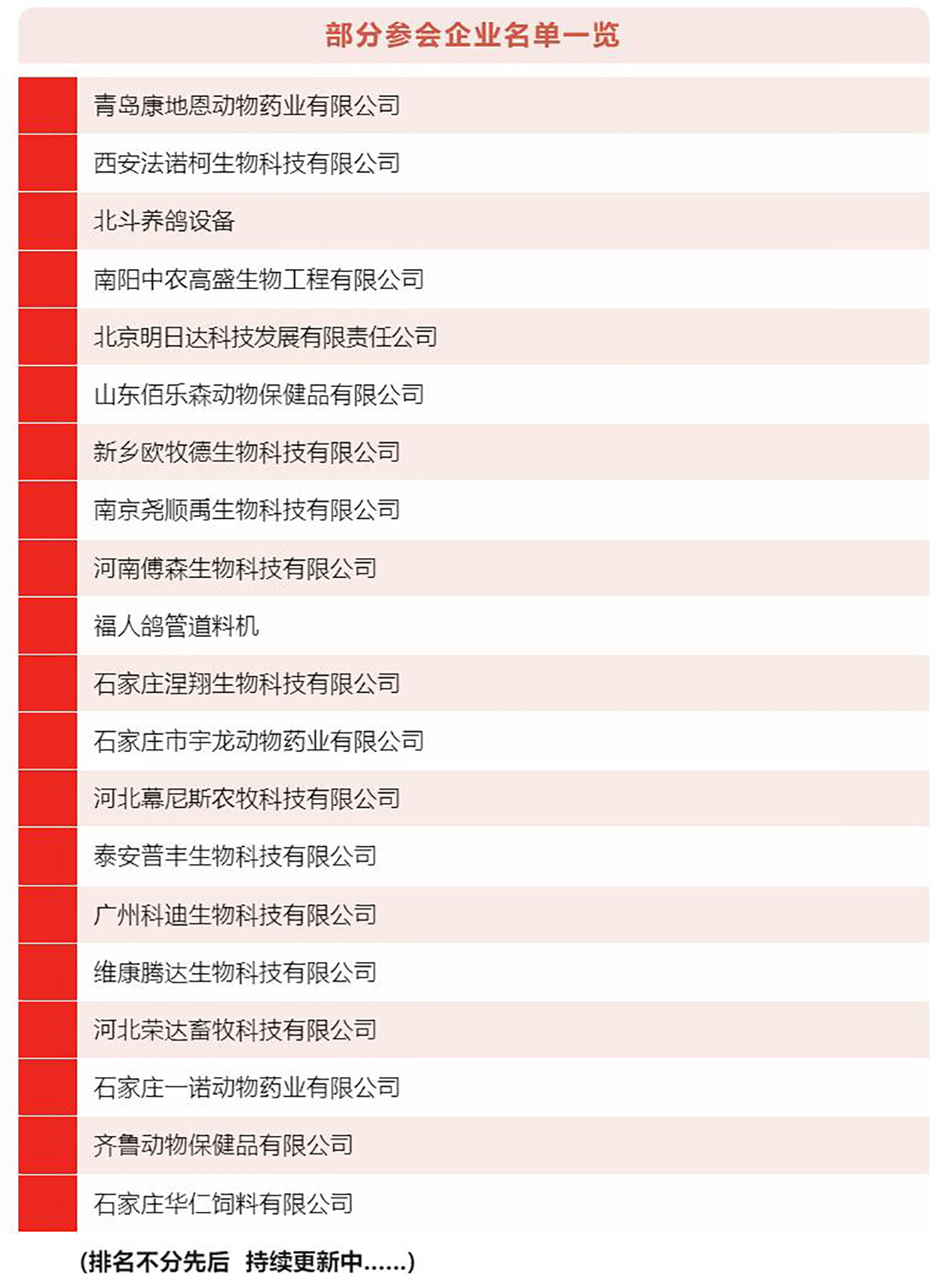 參會(huì)企業(yè)名單 | 2025“山河四省”鴿業(yè)發(fā)展大會(huì)暨第十屆肉鴿交流研討會(huì)