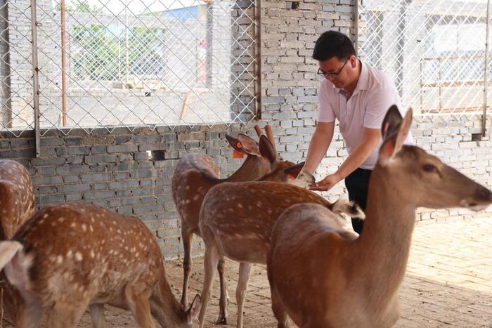 養(yǎng)殖戶查看梅花鹿身體情況。黃杉杉攝