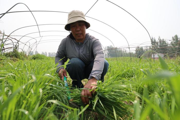 養(yǎng)殖戶割草為螞蚱準(zhǔn)備青草飼料。黃杉杉攝