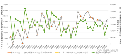 3、2020年6月份月度報(bào)告加入了5月份的海關(guān)數(shù)據(jù)。出口的兔產(chǎn)品主要有家兔及野兔、其他家兔及野兔(改良種用除外)、兔肉、凍兔肉(不包括兔頭)、未縫制整張兔皮、已梳兔毛、兔毛制針織鉤編套頭衫、開襟衫、外穿背心等;;進(jìn)口產(chǎn)品有家兔及野兔皮、整張兔皮、未縫制整張兔皮、兔毛制針織鉤編套頭衫、開襟衫、外穿背心等。